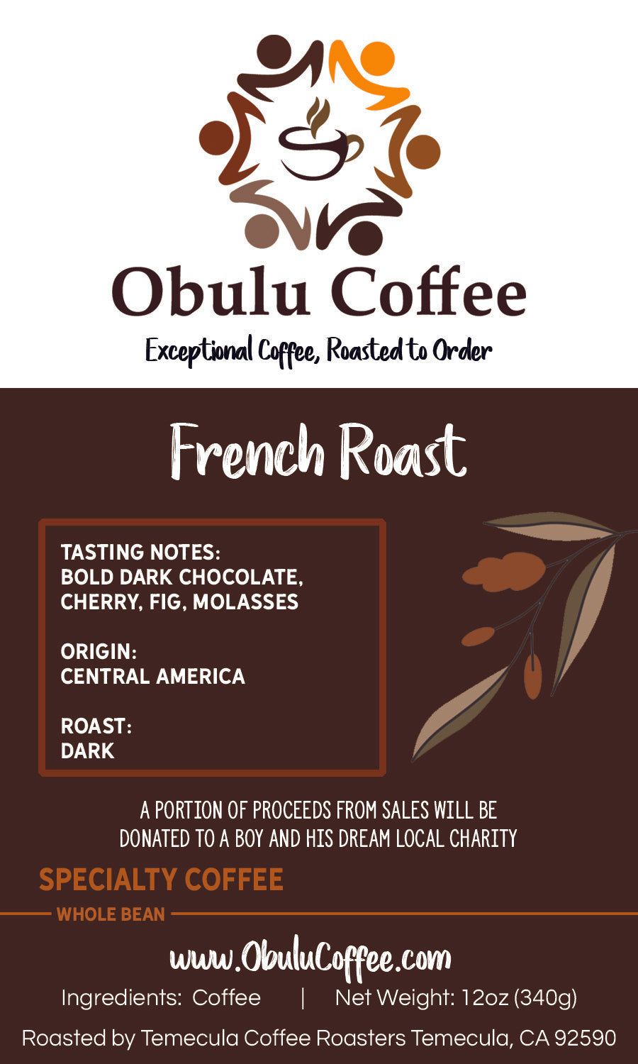 If you love dark, intense, and rich coffee, Obulu’s French Roast is sure to delight. While many French Roasts offer a bold, dark chocolate profile, what sets ours apart is the unique blend of fig, cherry, and molasses notes that add depth and complexity. This combination creates a beautifully layered cup that’s both bold and unexpectedly smooth—perfect for those who crave a truly distinctive dark roast experience.